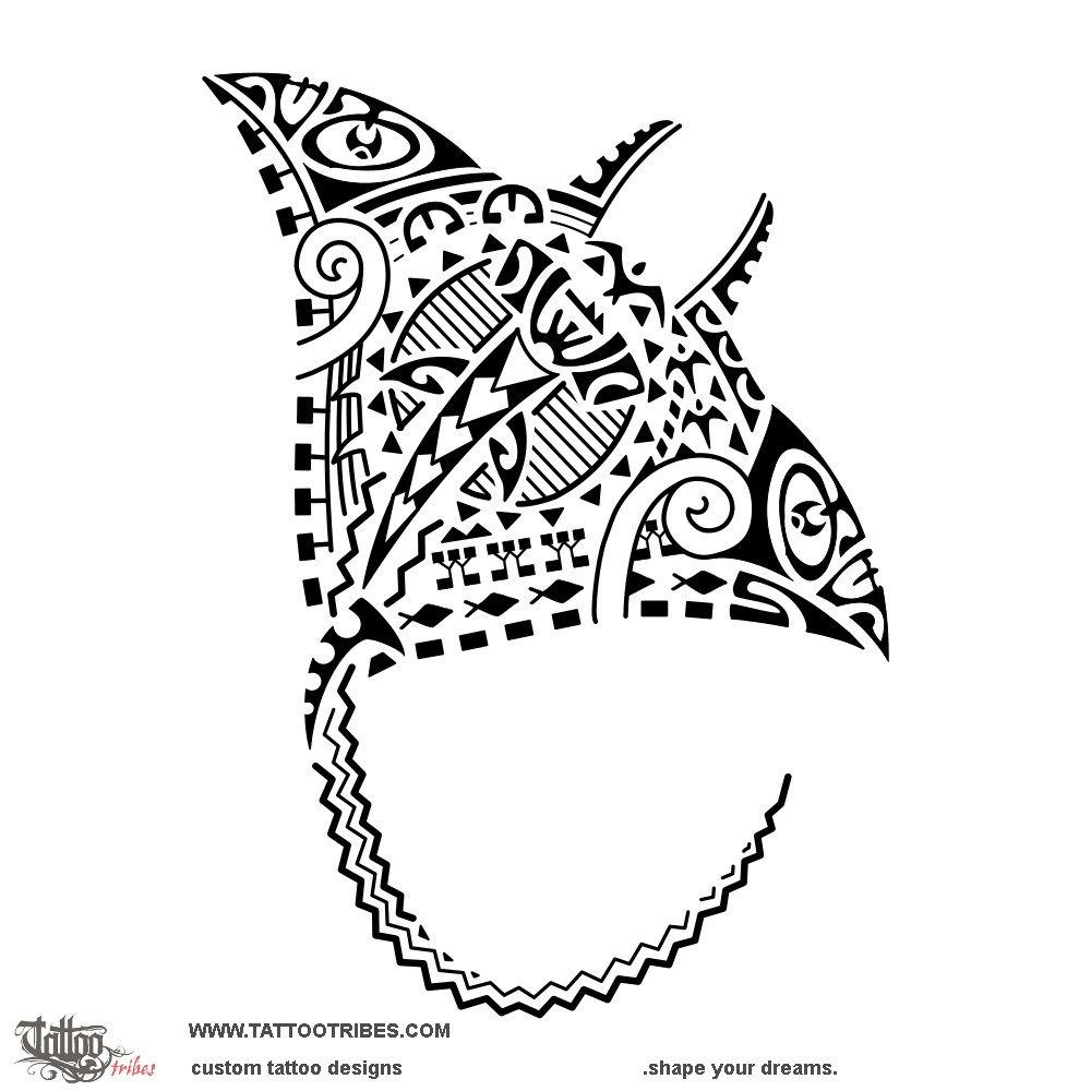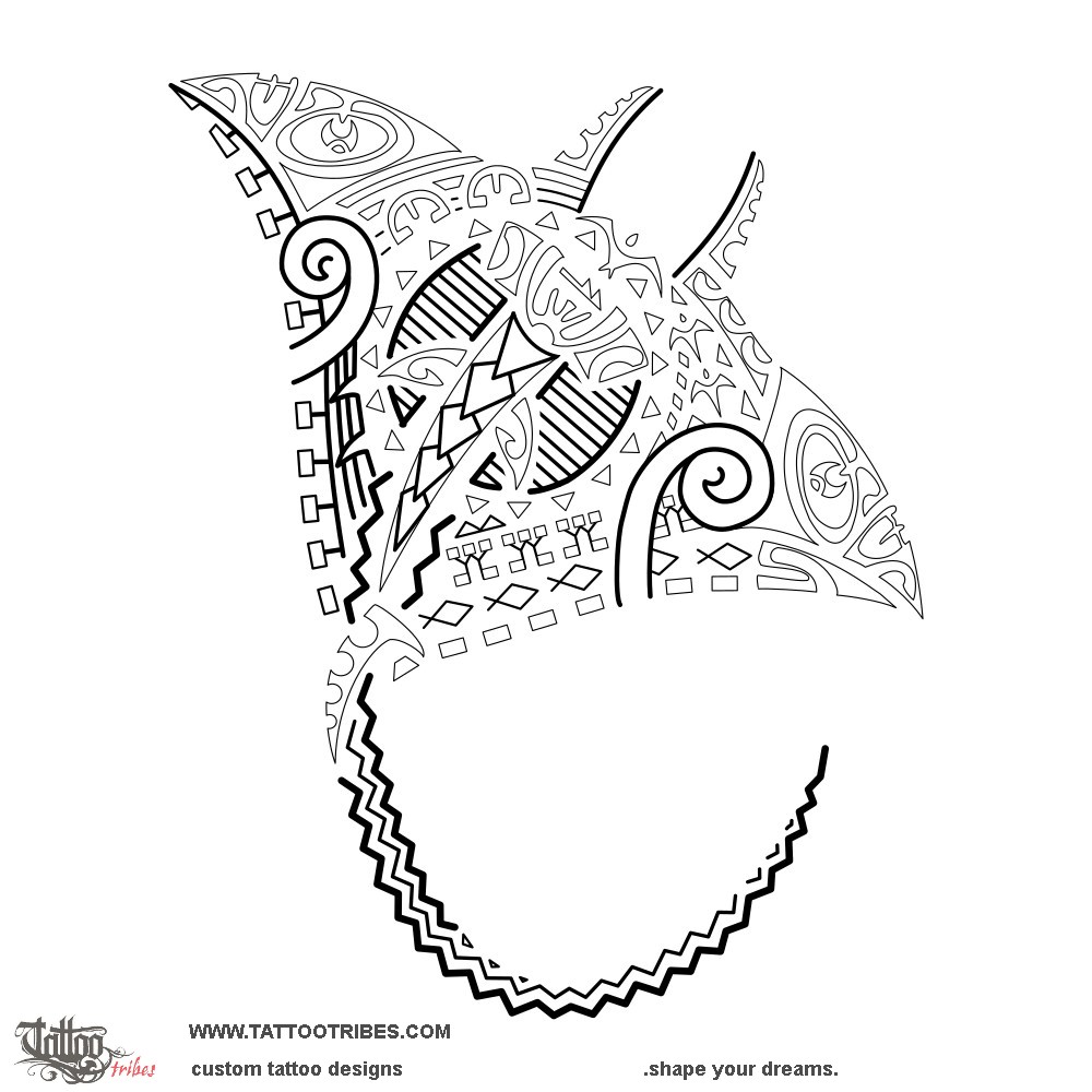 This Polynesian manta tattoo was designed to go on Max's thigh with the tail following the quadriceps line down to the knee.