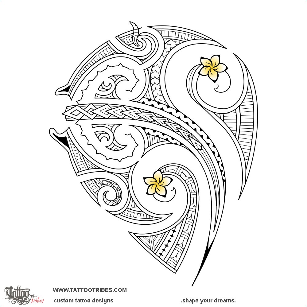 The manta of this Maori kirituhi tattoo represents freedom and it protects the two koru (new life) paired with frangipani flowers (children, femininity) representing the daughters of Dave, for whom this tattoo was designed.
