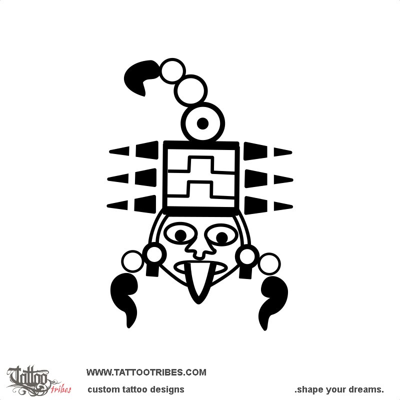 We prepared this small scorpion joining elements from different Aztec/Mayan carvings for Kip, while the minimal version below is the outline of an actual Mayan flint scorpion statuette: