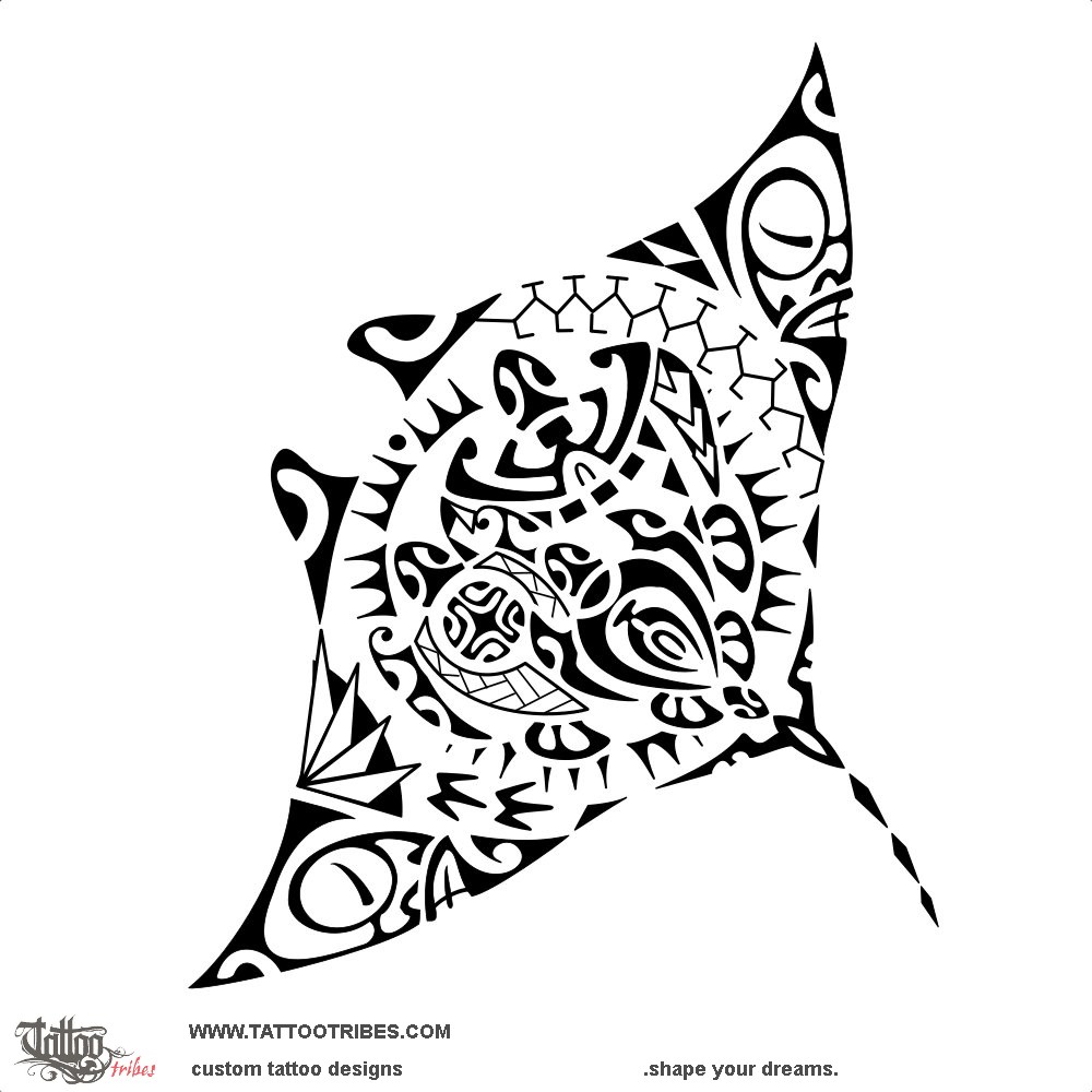 Polynesian family union manta tattoo