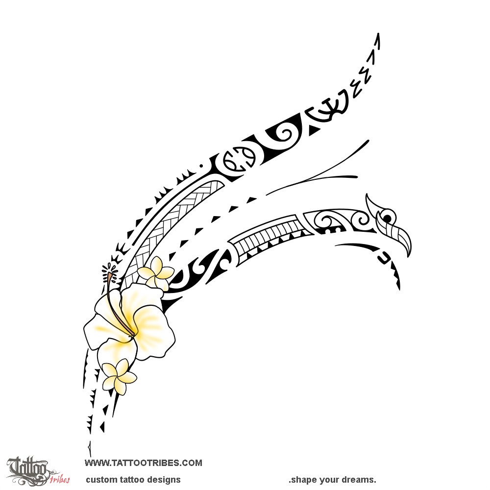 The hibiscus symbolizes carpe diem while the plumerias represent femininity.