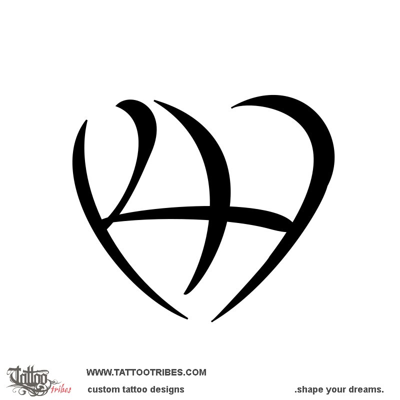 This simple, minimal heartigram designed to fit in the smallest size is shaped by the letters K and H woven together.