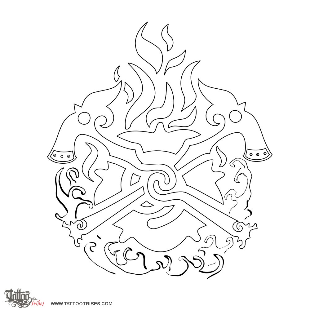 This tattoo, requested by Dean, was designed starting from some typical symbols of firefighters, revisited in a tribal style. We chose as a basis the style of some Borneo tattoos because they are tattoos that represent union, brotherhoodamong warriors and valiance. The two rosettes, one underlying the axes and a stylized one that becomes one of the two axes, are symbols of protection.