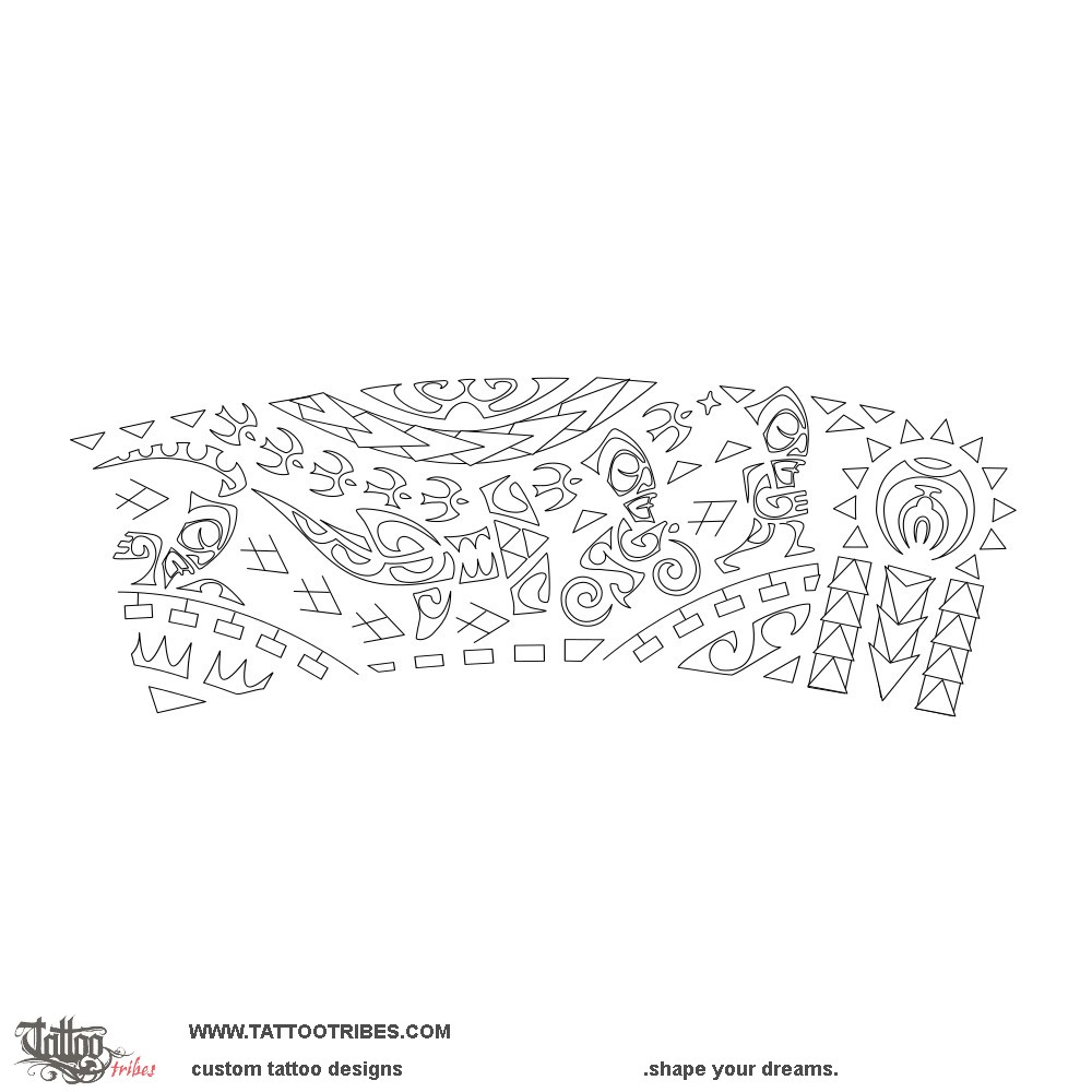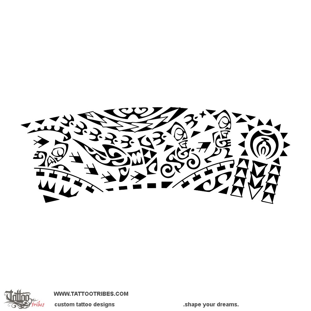 This Polynesian armband tattoo was prepared for Ana Luiza and it represents a personal journey followed with resilience (the warrior on top with spearheads above the row of birds), as well as triathlon.