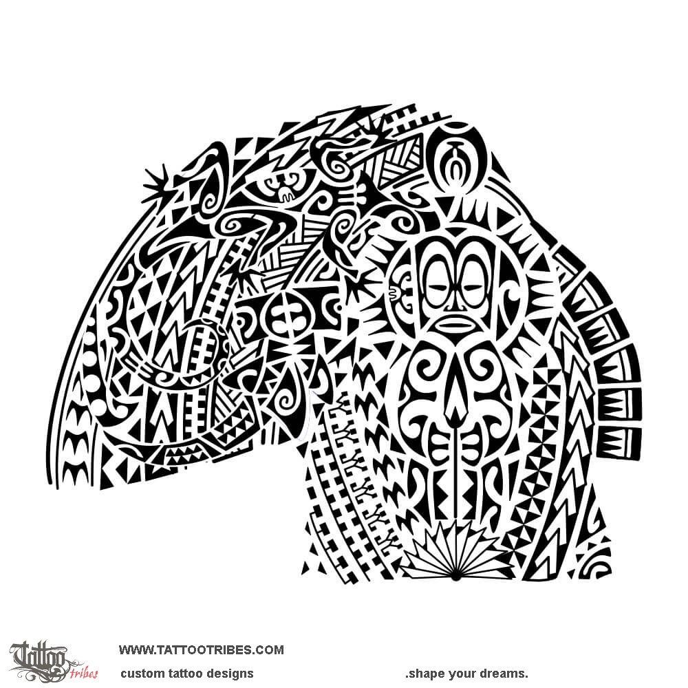 The spearheads, octopus tentacles, and shark teeth are symbols of strength, adaptability, and tenacity, while the manulua is a symbol of union and prosperity, as are the coconut leaves and the fish hook.