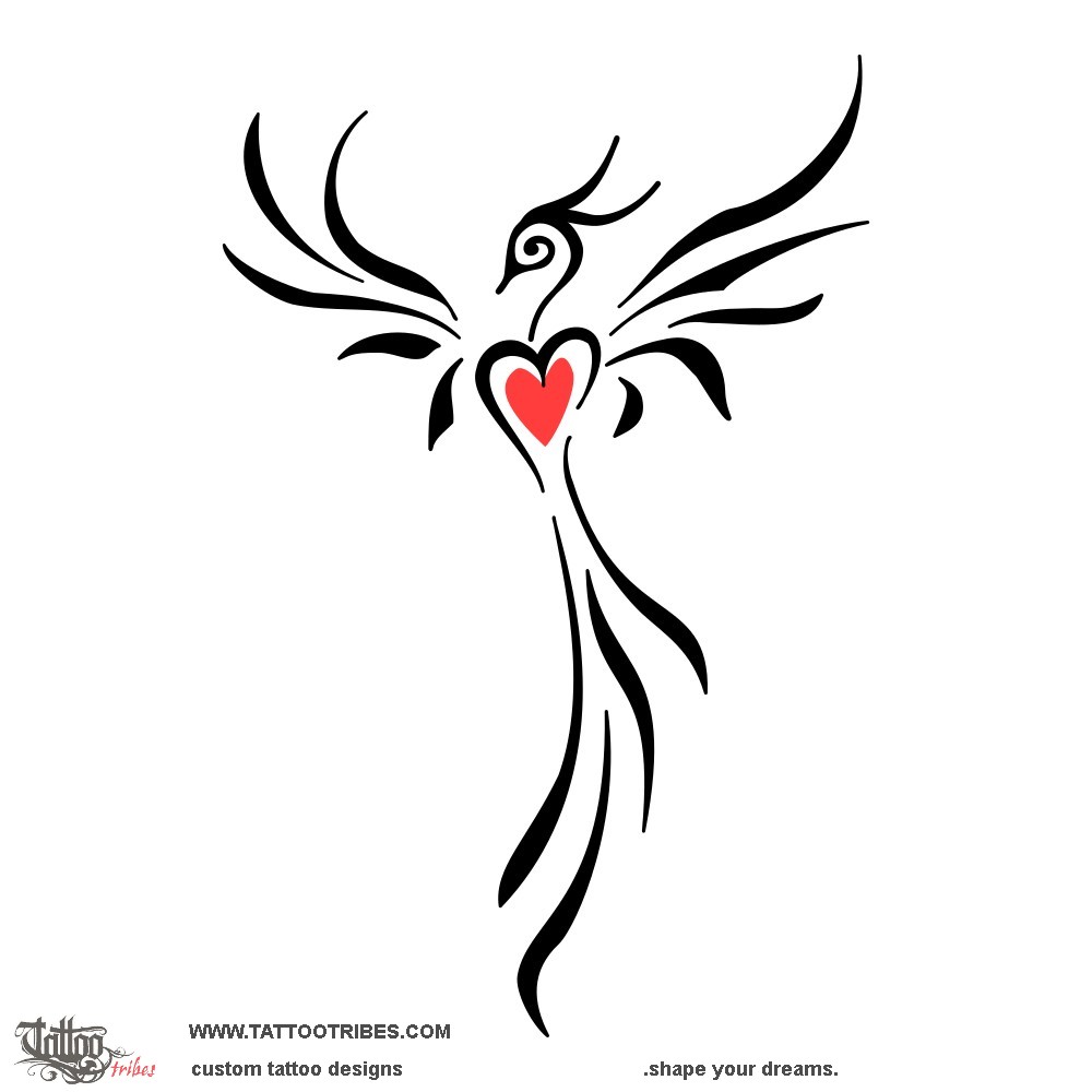 Alena lost her partner and believed that she would not find love again, but life has ways we don't expect to care for us, and this feminine tribal phoenix was prepared as a proof of it, representing the love that she found again, symbolized by the red heart within the phoenix.
