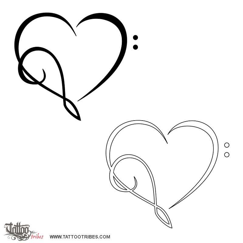 We thought of a heart made of a bass clef and a treble clef, where the latter is upside down to symbolize this impossibility.