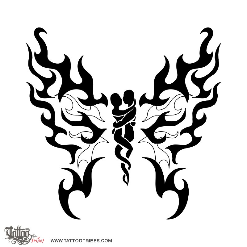 Michelle requested a tattoo inspired to a design she saw years ago, of a butterfly made by two people in a hug, with wings made of fire, this because of her husband being a Volunteer Firefighter.