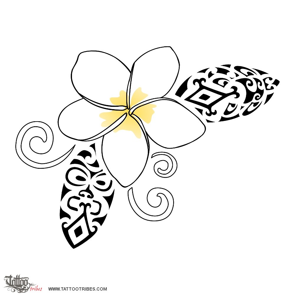Inside the leaves of the flower, along with some Fijian motifs representing bird nets (abundance, unity), we placed a turtle and a tiki to symbolize the central values in the life of Amalaini, who requested this tattoo: family and god.