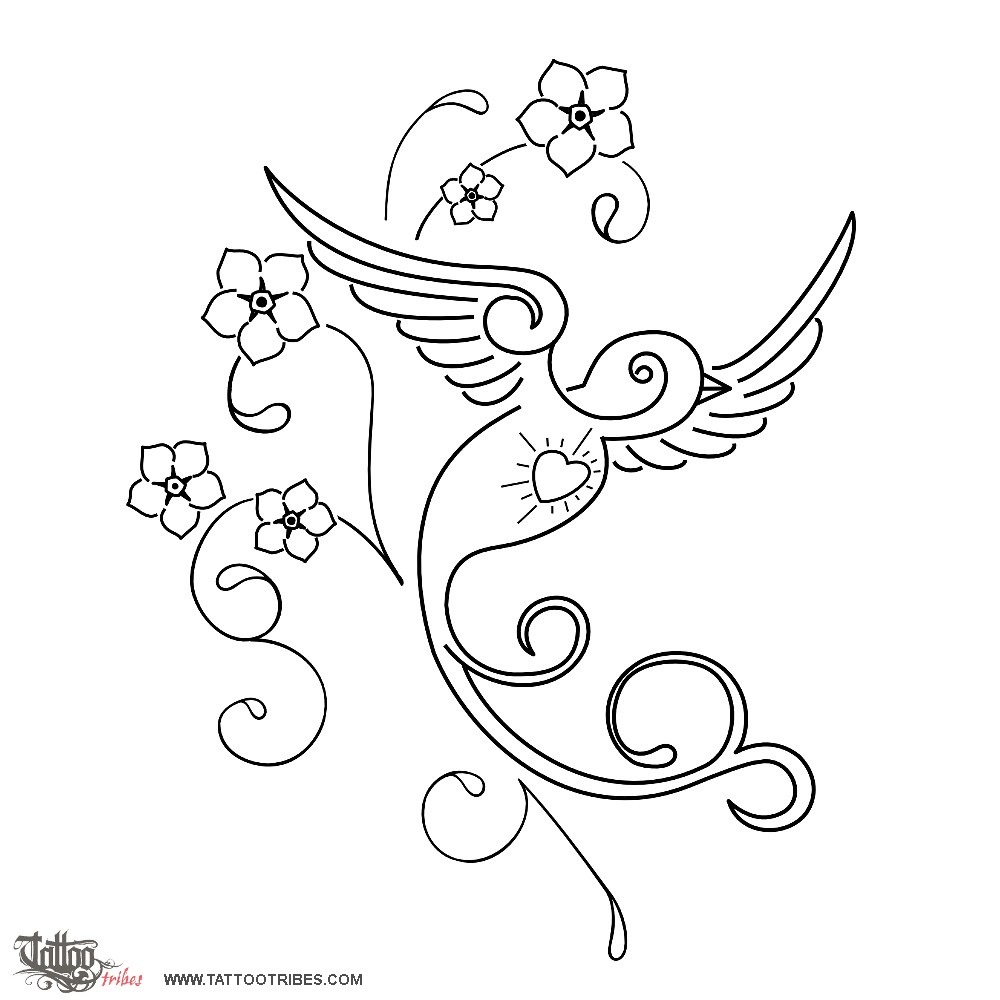 Swallows & flowers tattoo photo