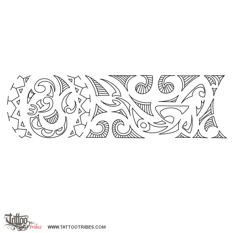 This wrist band tattoo incorporates some elements representing a new start (koru), protection and balance (manaia) and strength and adaptability (shark), characteristics that are necessary for taking any change, along with determination (the hammerhead shark motifs around the shark) and positivity (the sun, which we placed around the manaia to symbolize that balance is the way to serenity).