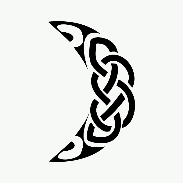 The star indicates the path to follow (korus on the points symbolize new start), and it encloses a pentacle that recalls paganism; the moon is a symbol of femininity and fertility, hence the small waves motifs on the points.