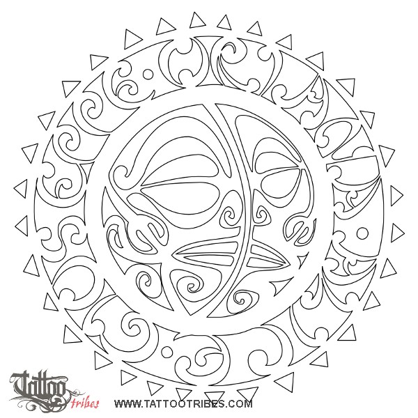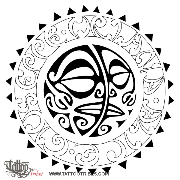 The edges of the rays are made of shark teeth (adaptability and strength) while the circle of rays is made by a maorigram showing the names of the family members of Gian Luigi, who requested this design: Oriana, Alice and Giuseppe. The tiki shaped by the two halves is a symbol of protection, and we inserted some stylized waves (change and voyage) and ipu (fertility and abundance). The chin of the tiki composes a mangopare motif (hammerhead), indicating tenacity and determination. The dots between the names represent his fixed points, and each one of them corresponds to a family member.