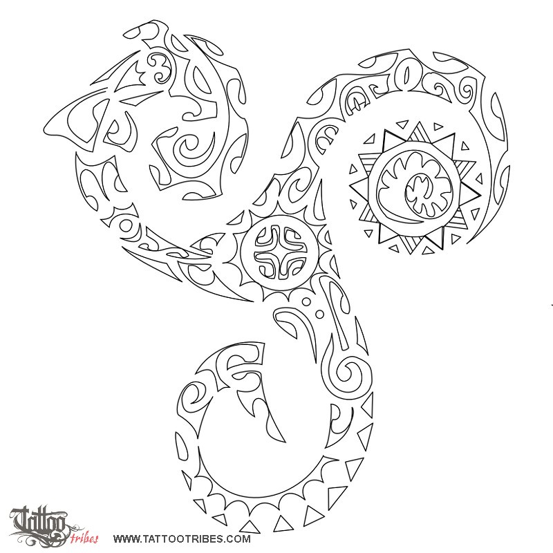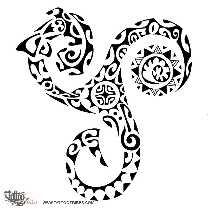 This design joins the celtic triskell, symbolizing eternity and balance, to Polynesian tradition. The Marquesan cross in the center of the triskell shares the same concept of union and balance of elements (wharite means "balance").