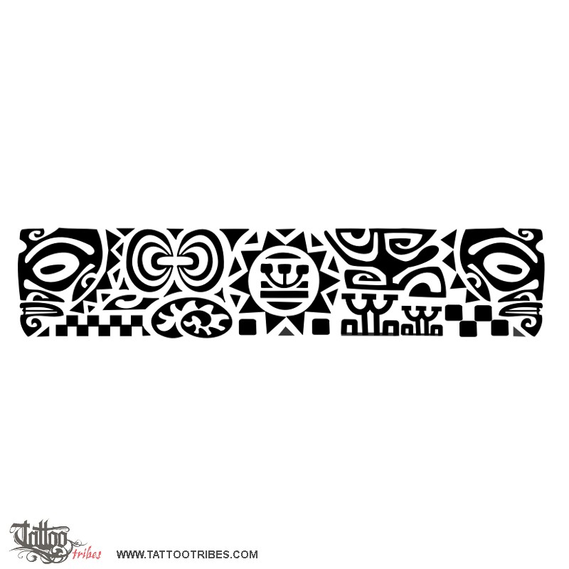 Polynesian tattoos explainedThis wristband with minimal blank spaces, and many elements derived from the Marquesan tradition, was requested by Kathleen.