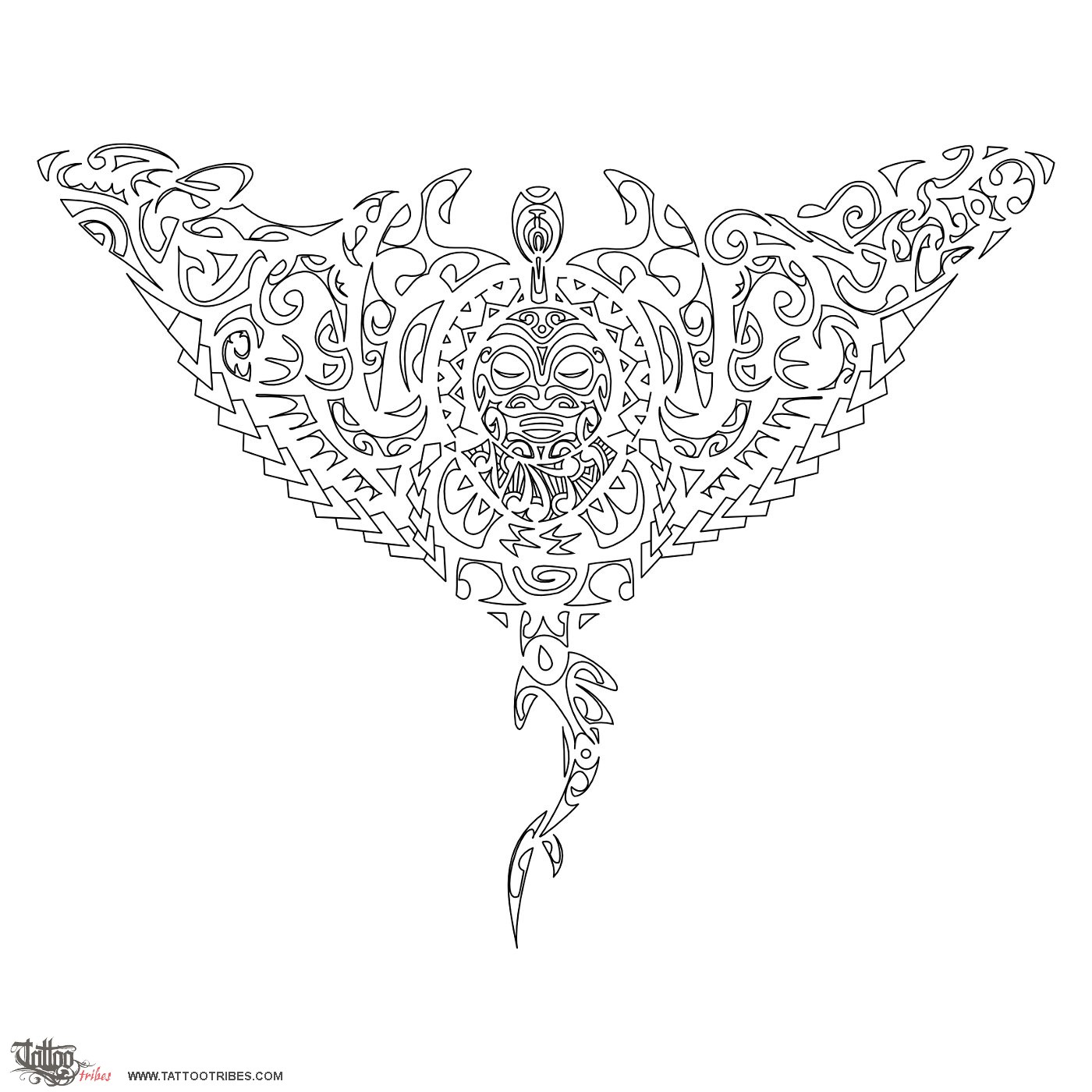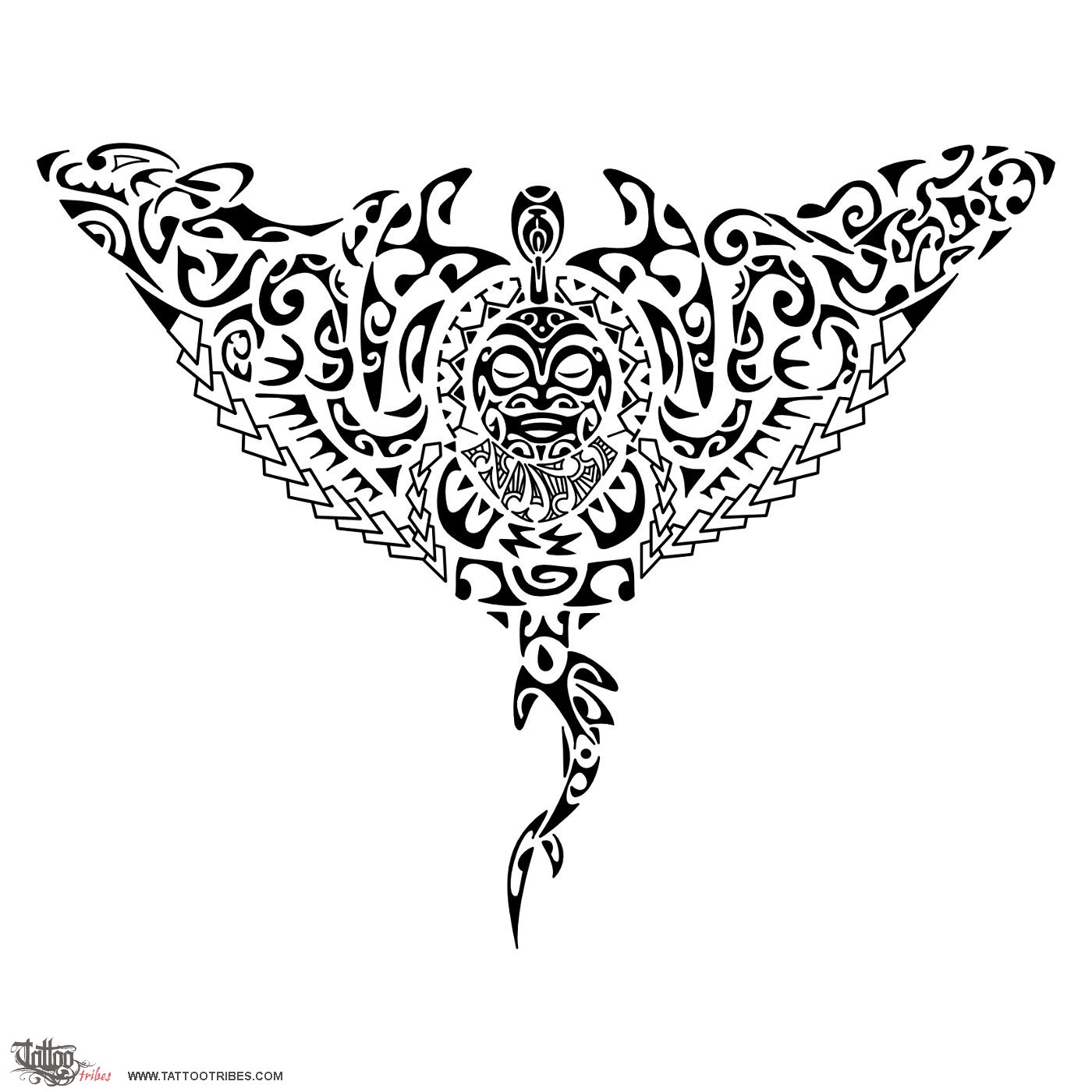Polynesian tattoos explainedThe central part of the manta ray includes a turtle, symbolizing family and long life, with the shell made of a tiki (protection and fertility) surrounded by a sun (eternity and joy). Below the name, the two birds following each other symbolize how Paul will always be there to help is daughter, and the stylized hand right below is to indicate he will always give her a hand whenever a hand is needed.