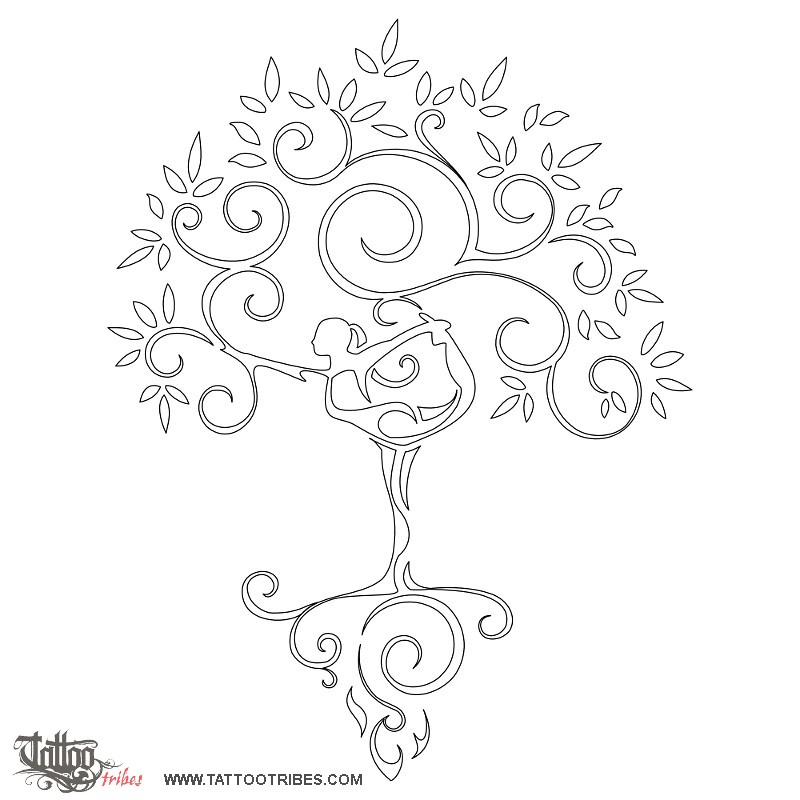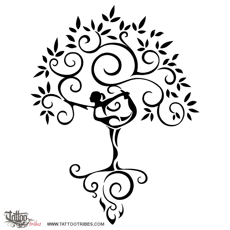 This design symbolizes yoga, which she practices and teaches, and it´s a wish for her to reach the roots of her pain (here represented by the flames among the roots of the tree) and through yoga to overcome this problem blooming again as a tree, strong, prosperous, bringing her fruits to the world.