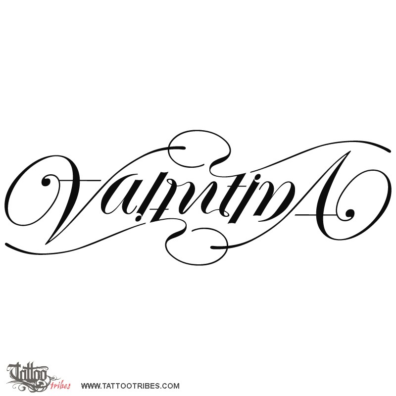 A classic ambigram example is represented by names that can be read when rotated by 180 degrees too, like the name Valentina in this design.