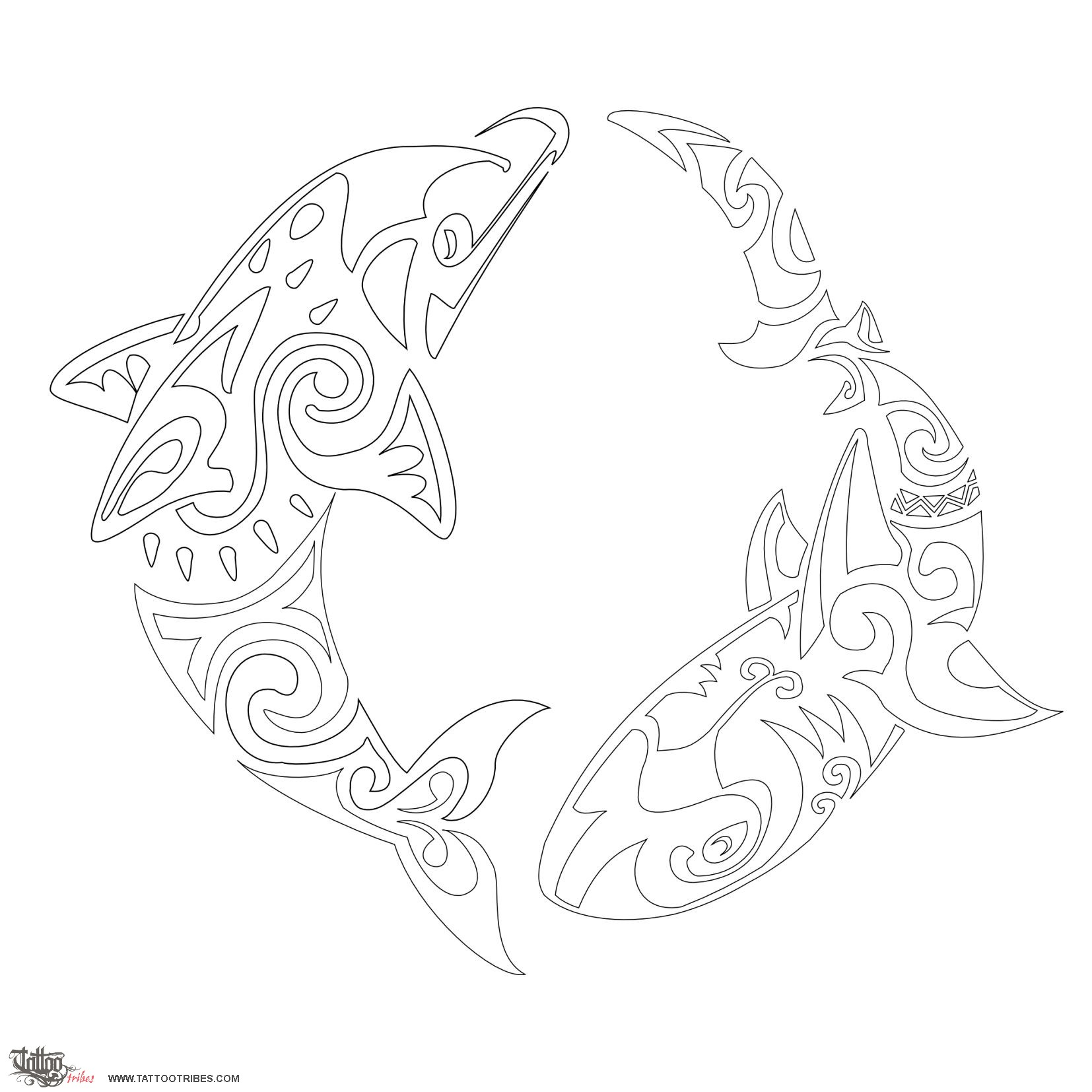 Jex asked for a design with a shark and a dolphin harmoniously following each other in a circle.