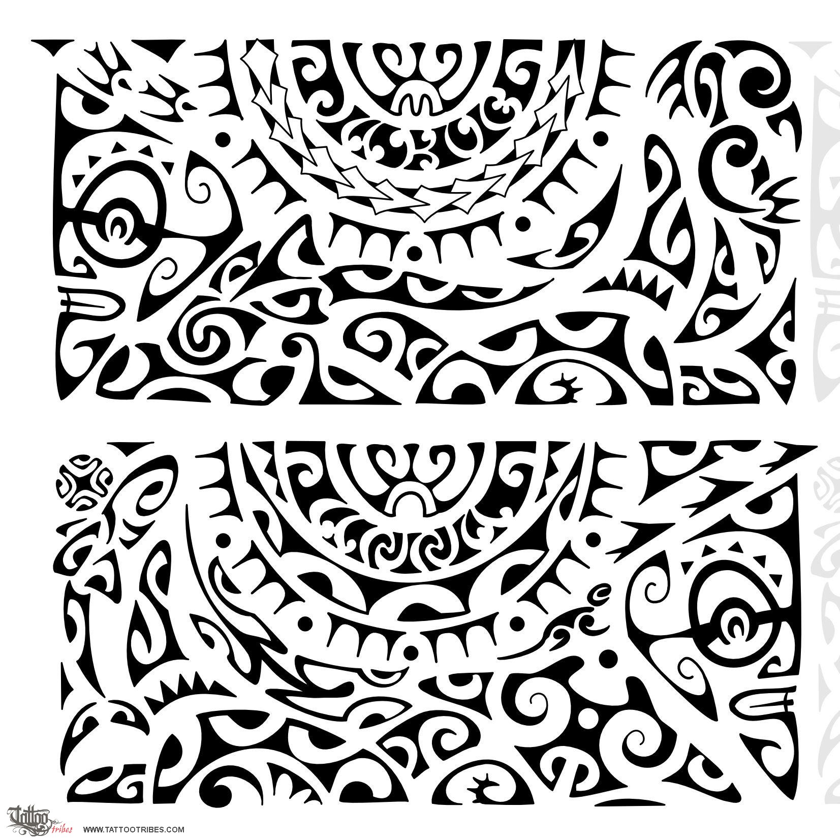 Left and right armbands are different, with three common elements: the sun (eternity, joy, positivity and success), the turtle (family) and a tiki (protection).