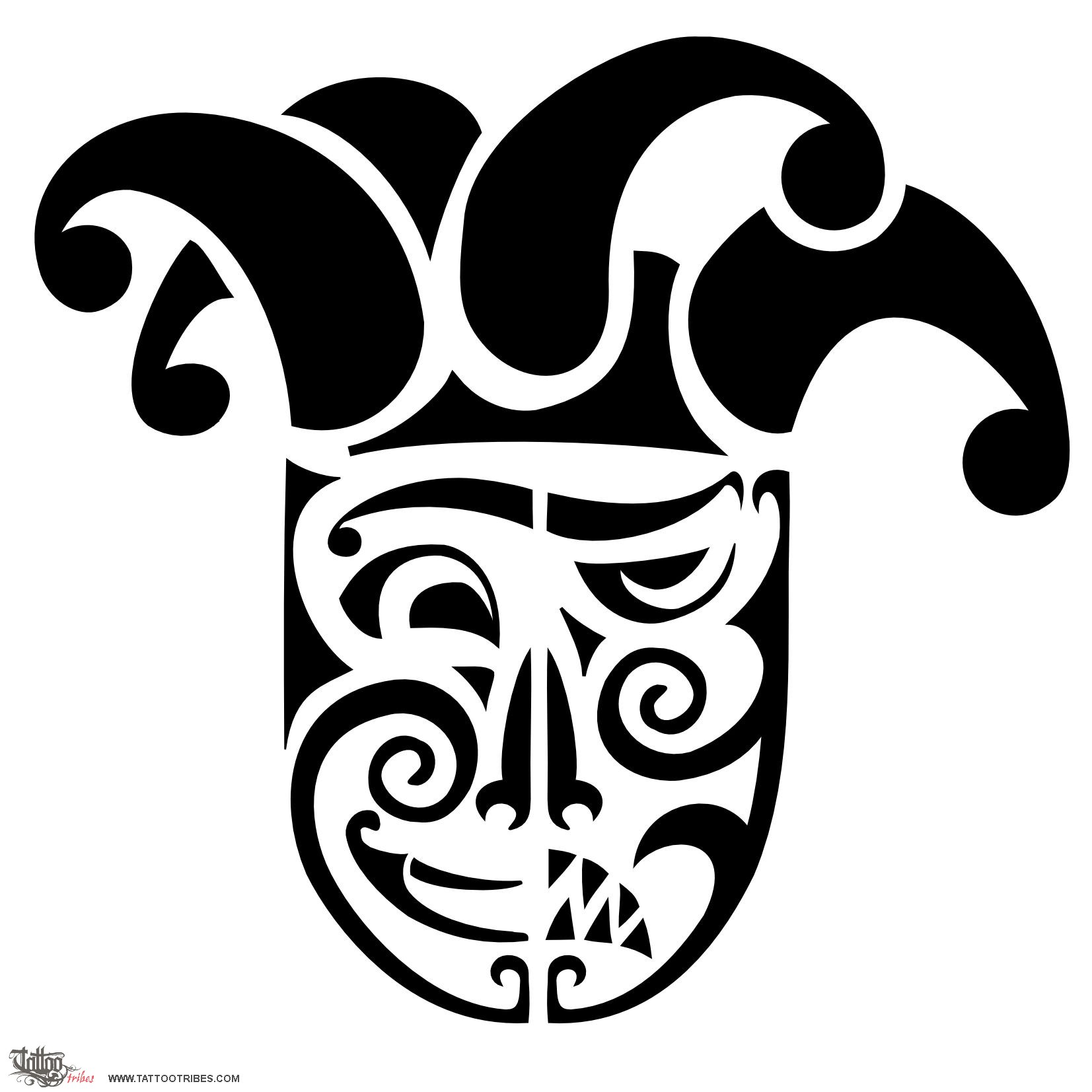 Simone requested a Maori styled joker face, divided in two parts one of which represents good and joy, and the other one evil and sorrow. It is better seen by covering in turn one side and then the other.
