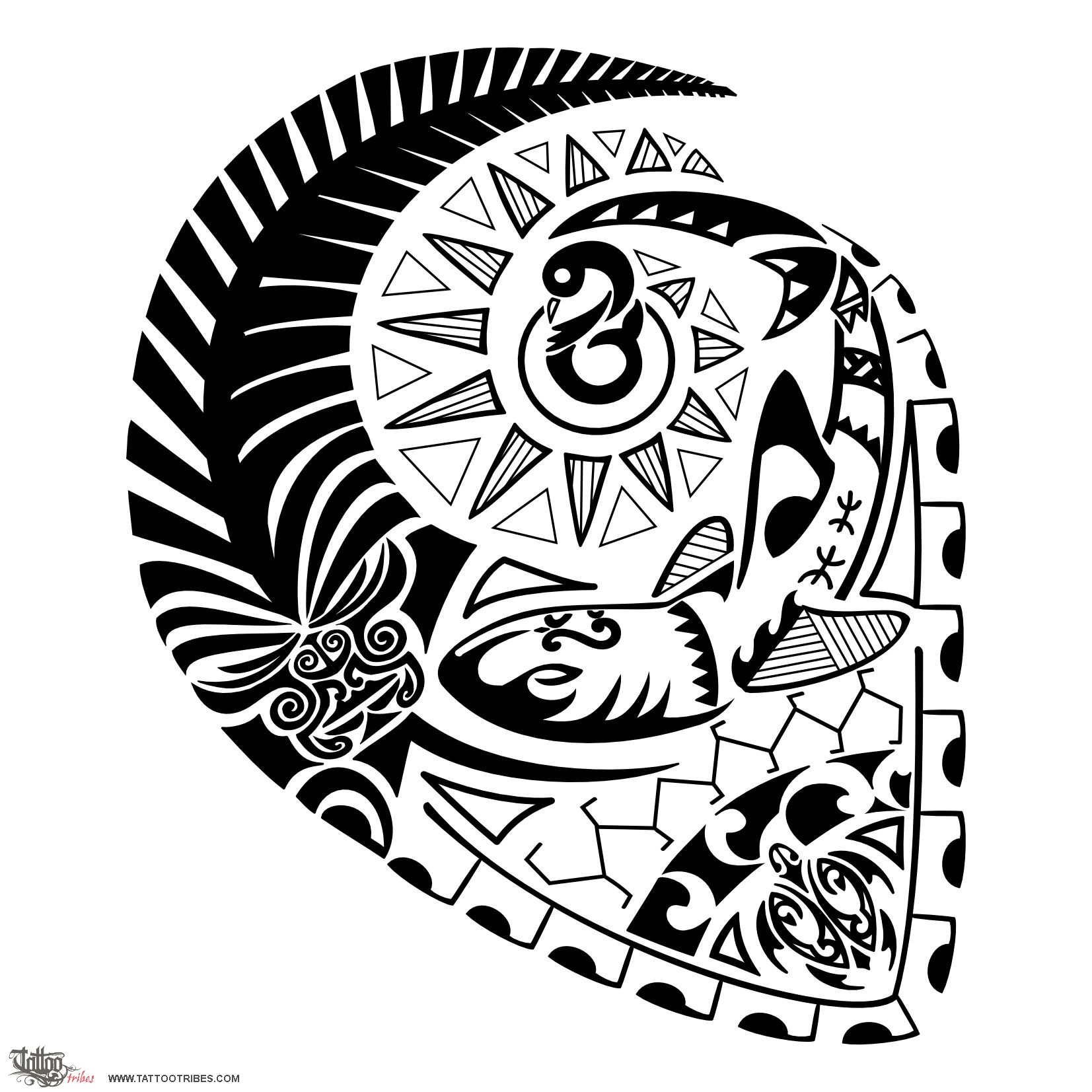 This tattoo, requested by Matteo, symbolizes the voyage of a life, the process that leads to forming one´s own character and finding indipendence, without forgetting one´s own roots. Several elements appear in this design,  like the shark, the turtle, the sun, the fern, the koru and the Maori warrior, Te Manaia and the birth year, and each element merges into the other like the different aspects of a personality blends together to make the person.