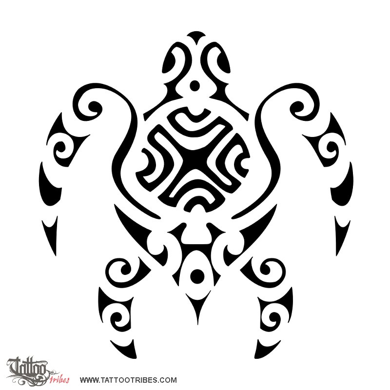 The lower part of the turtle is made of waves going downwards, representing difficulties, but they are shaped like a manta (freedom, beauty) to show she got free of the difficulties and reached balance and positivity (the Marquesan cross in the middle of the shell). Korus are for her new beginning and the front flippers recall the wings of a bird because birds symbolize watching the world from a different perspective.