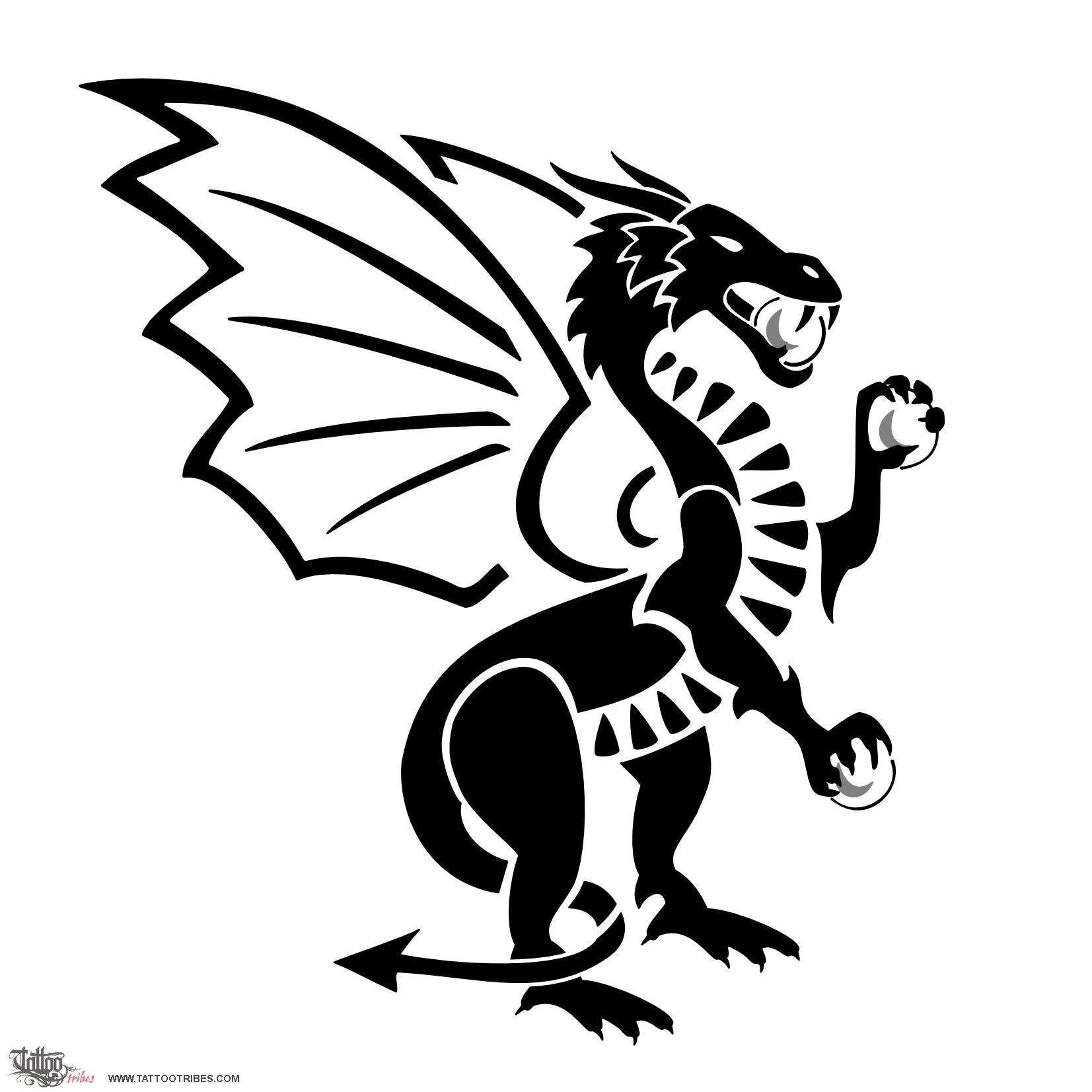 Alessandro requested a medieval dragon tattoo with three spheres, two in its claws and one in its mouth.