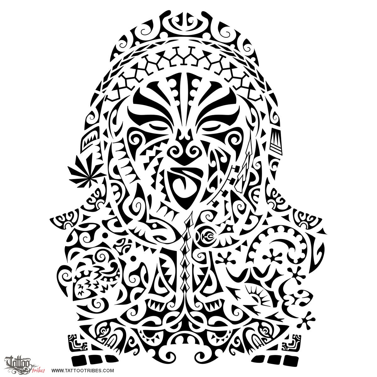 Polynesian tattoos explainedThe mask of the warrior with his tongue stretched out in the middle of this tattoo requested by Dempsey represents defiance, a challenging warrior and we used the shark and hammerhead shark motifs in it (adaptability, strength and tenacity).