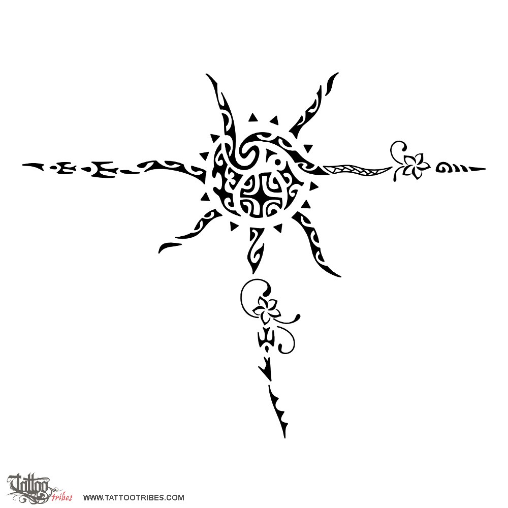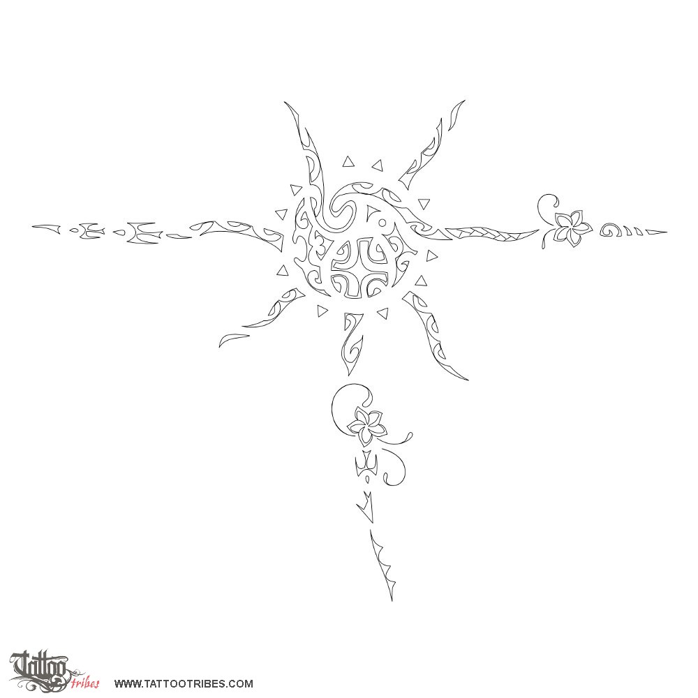 The two opposite aspects meet inside the sun, where a Marquesan cross represents union of the elements and harmony.