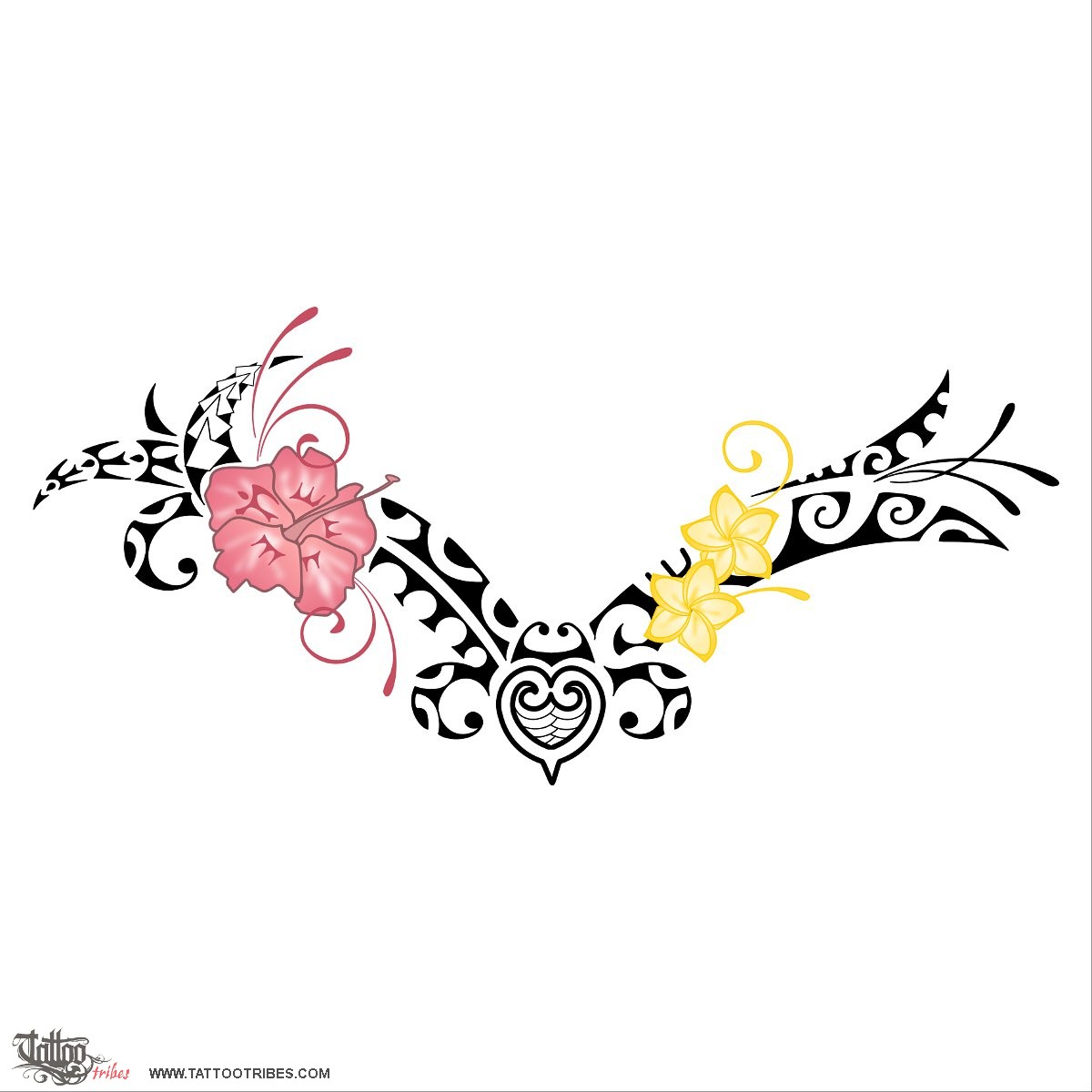The flower of hibiscus symbolizes femininity, beauty and carpe diem while the flowers of frangipani represent beauty and safety, patience.