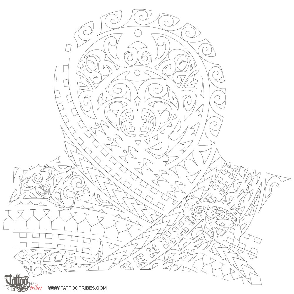 On the left side another manta is for freedom and voyage in his future, protected by the manaia next to it and by his ancestors (the row of stylized enata that runs below manta and manaia).