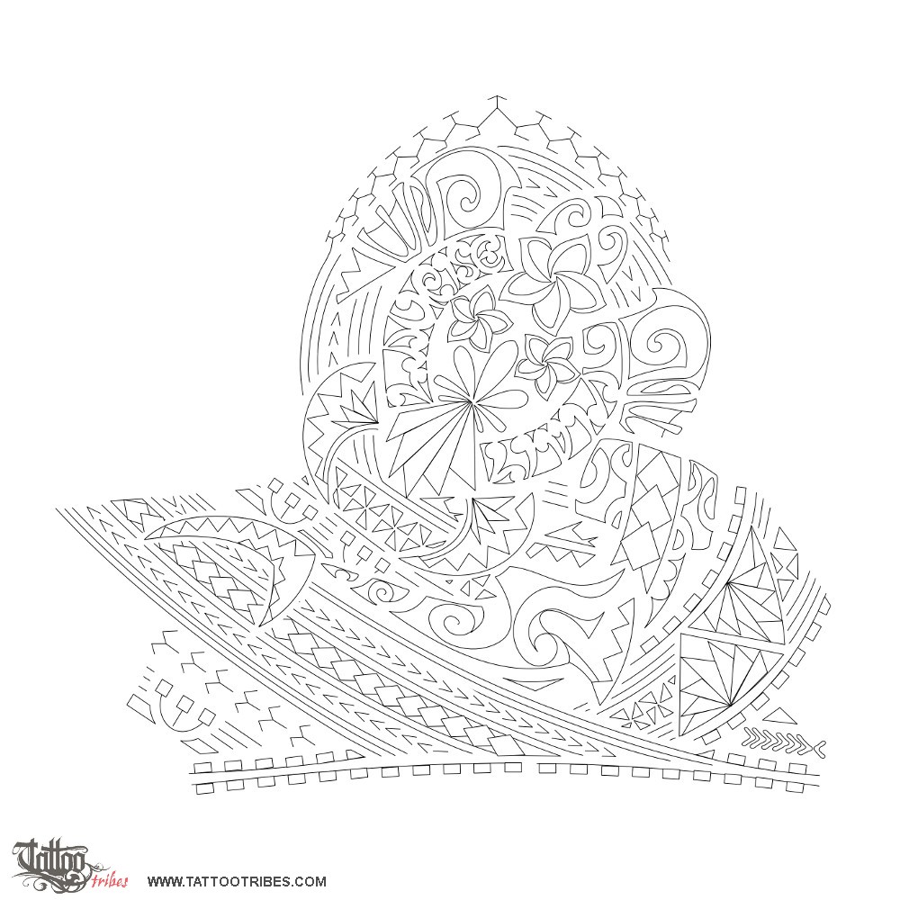 The tikis on the front flippers represent protection to the family from all sides while the motif on top symbolizes the ancestors guarding on the family.
