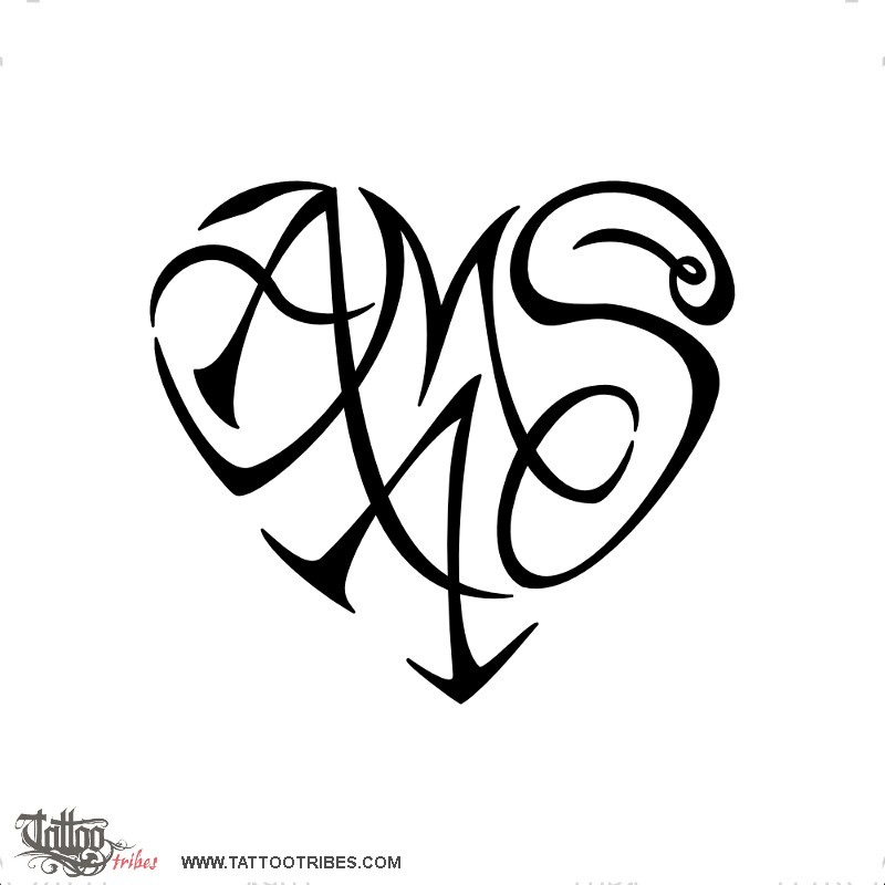 This tattoo was requested by Simona to symbolize the union existing among the members of her family, whose initials A+M+A+S shape the heartigram.