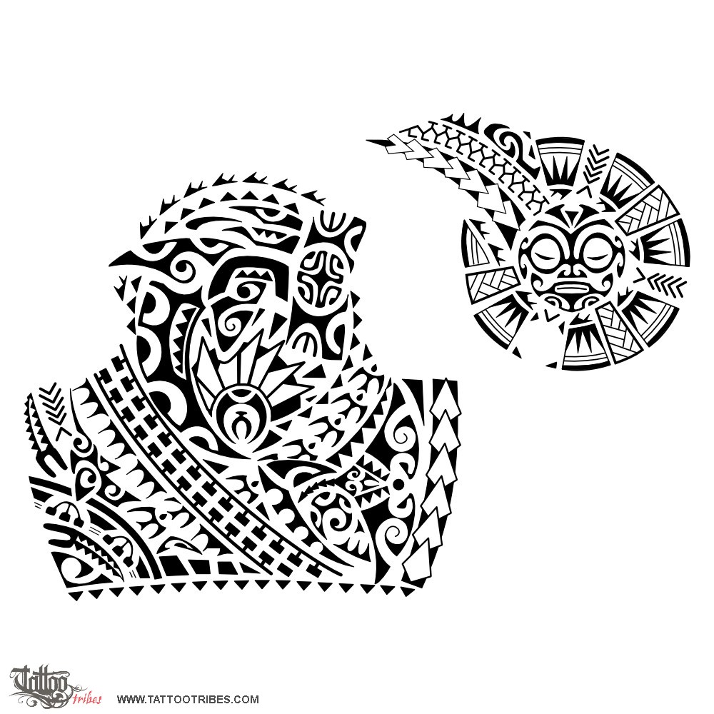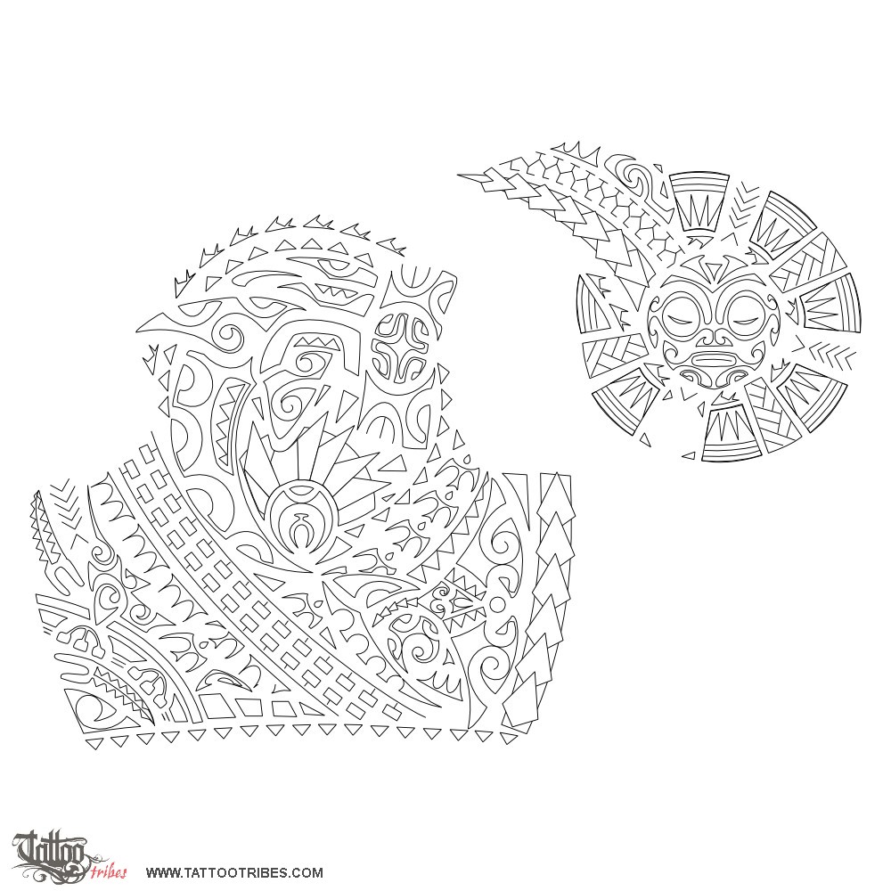 Both the all-seeing eye and the tiki on the pec are protective symbols guarding on family and on the happyness reached with adaptability (shark teeth) and freedom (the manta ray), watching the world from a different perspective (the row of birds).