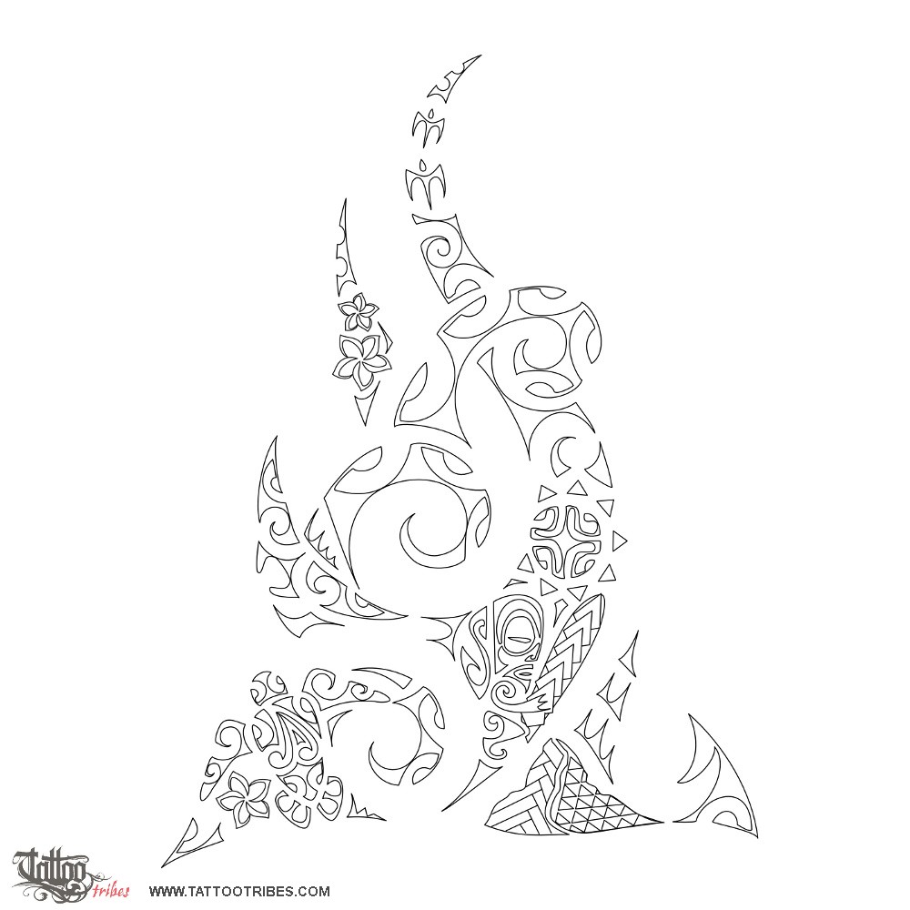 The korus shaping the waves are symbols of life and new beginnings, frangipani flowers are for femininity and the birds on top symbolize voyages, watching the world from a higher perspective and help to the dear ones.