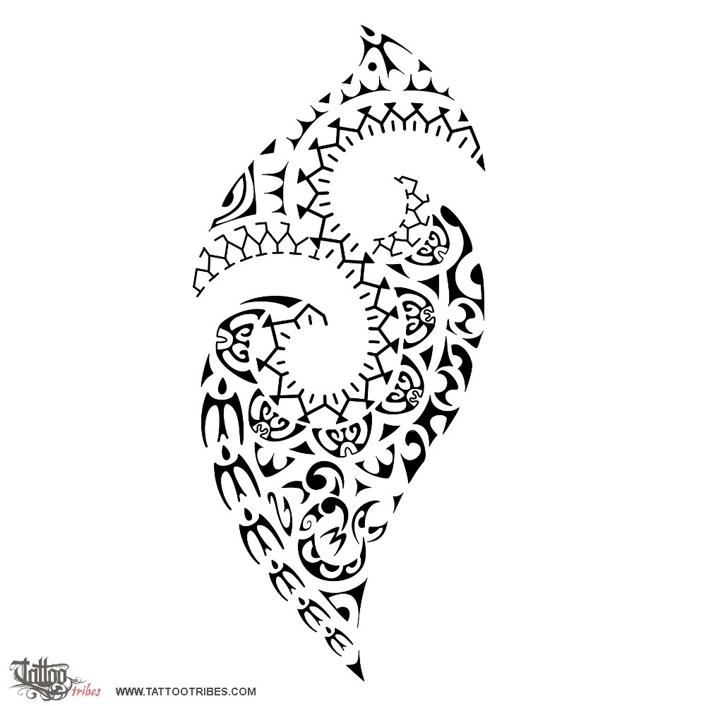This continuity is also represented by the turtle shell motif (honu, to represent family) which begins around the lower koru and ends around the higher one.