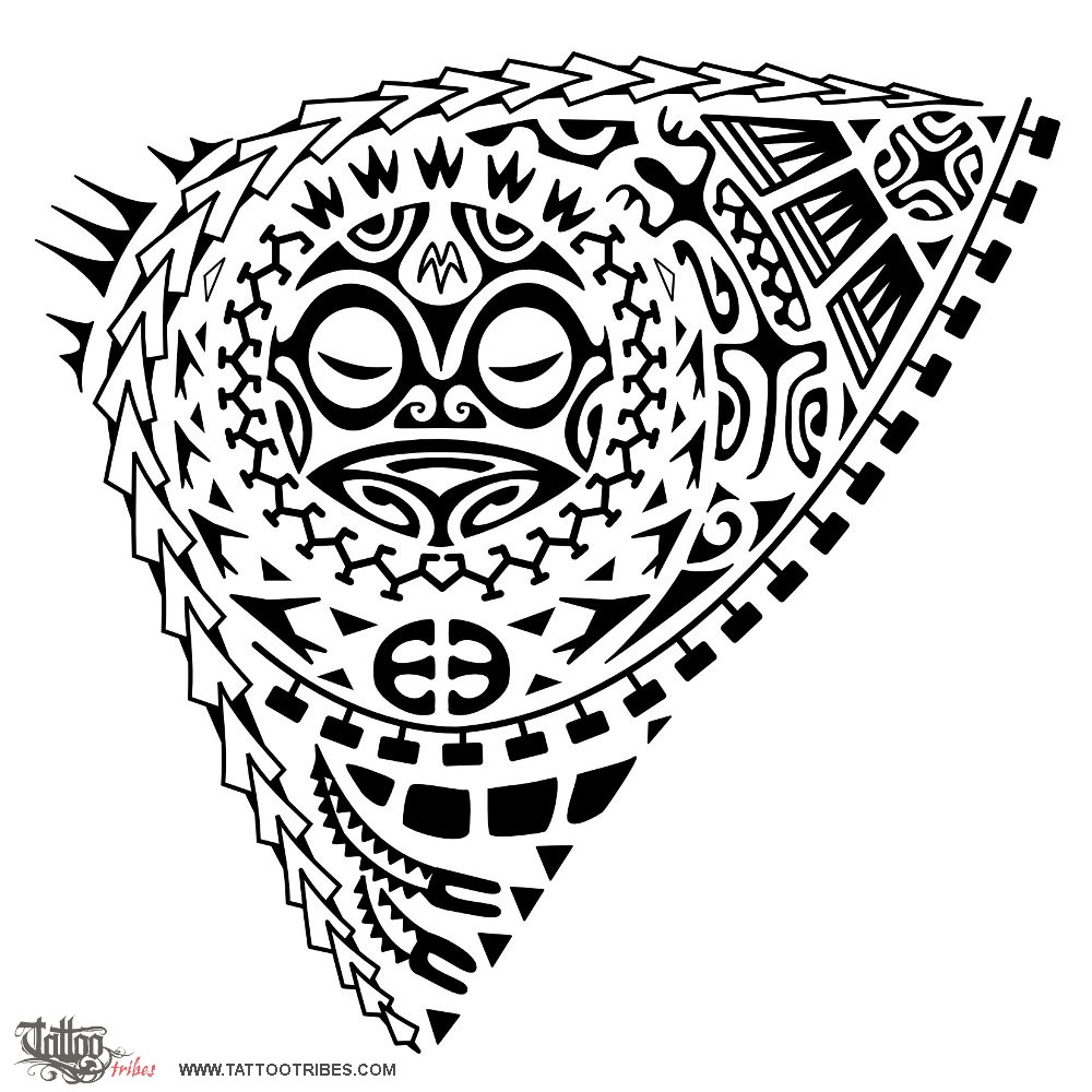 A lizard (good luck, communication to the gods) assists both family (the honu shell motif) and work (the fish hook) through every change (the waves near its head) while the central tiki represents the protector, guarding on him together with his ancestors (the ani ata motif around the tiki face).