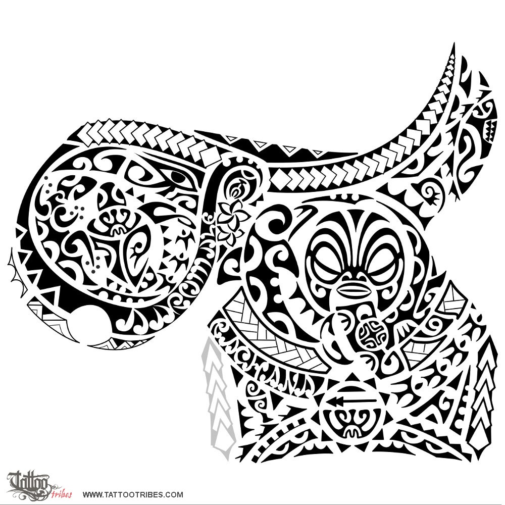 Other symbols are mountains (stability), a sea shell (love and intimacy), an octopus tentacle (tenacity, adaptability), two maorigrams, a braid for union, a Marquesan cross for harmony and balance, and the path of Kamehameha (a difficult path that leads to success).
