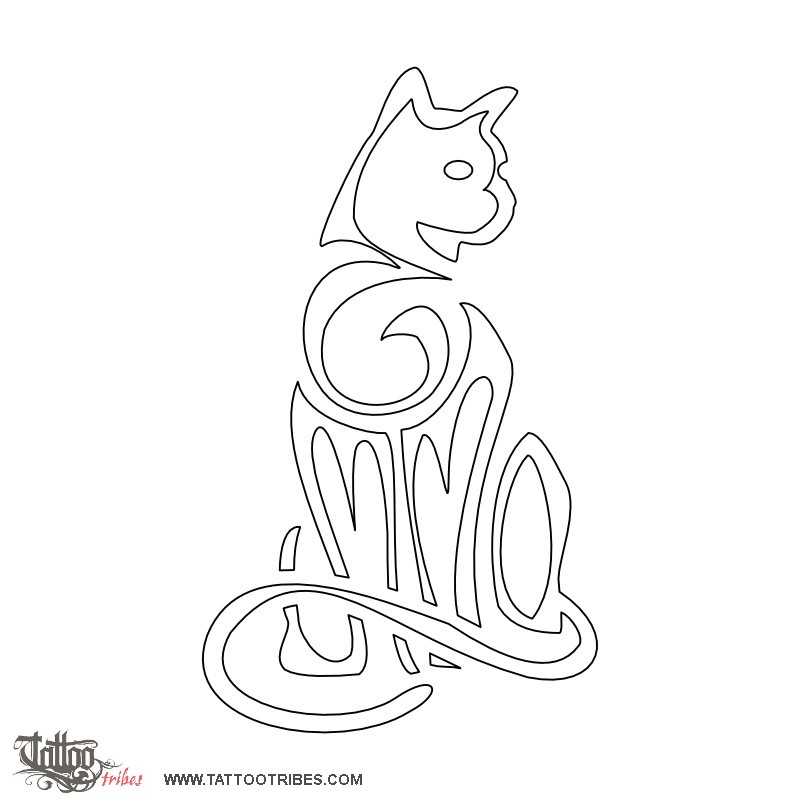 The name Emma shapes the cat´s body, with the E forming head and upper body, the two Ms drawing the legs and the A being the back and tail of the cat.