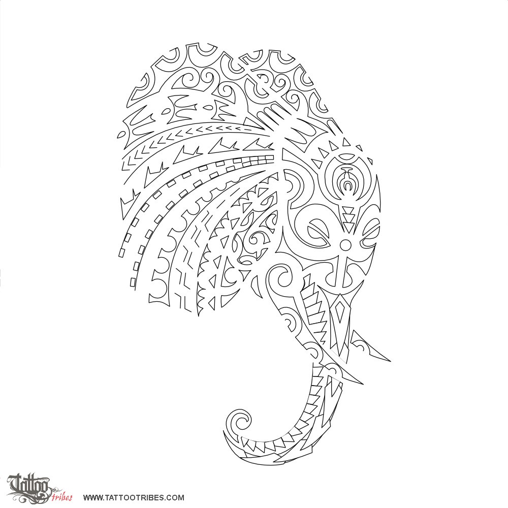 We designed this elephant tattoo to integrate some Polynesian tattoos Angeles already had on her arm.