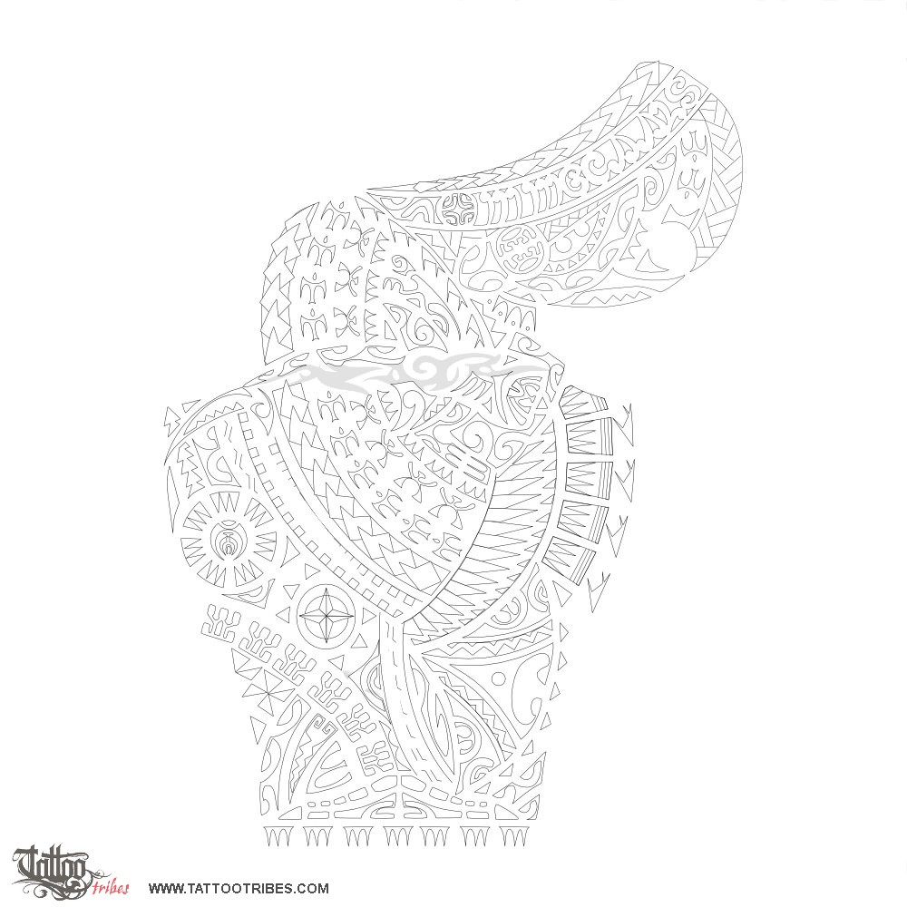 On the pec, close to the heart, the turtle symbolizes family, with the headletters of the family members placed above it as maorigrams.