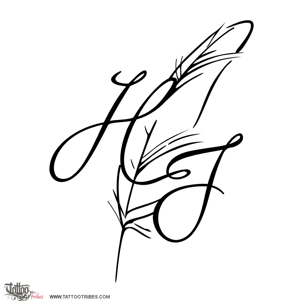 Trine requested a light tattoo joining the initial letters of her children´s names, H and J, to a stylized feather she liked.