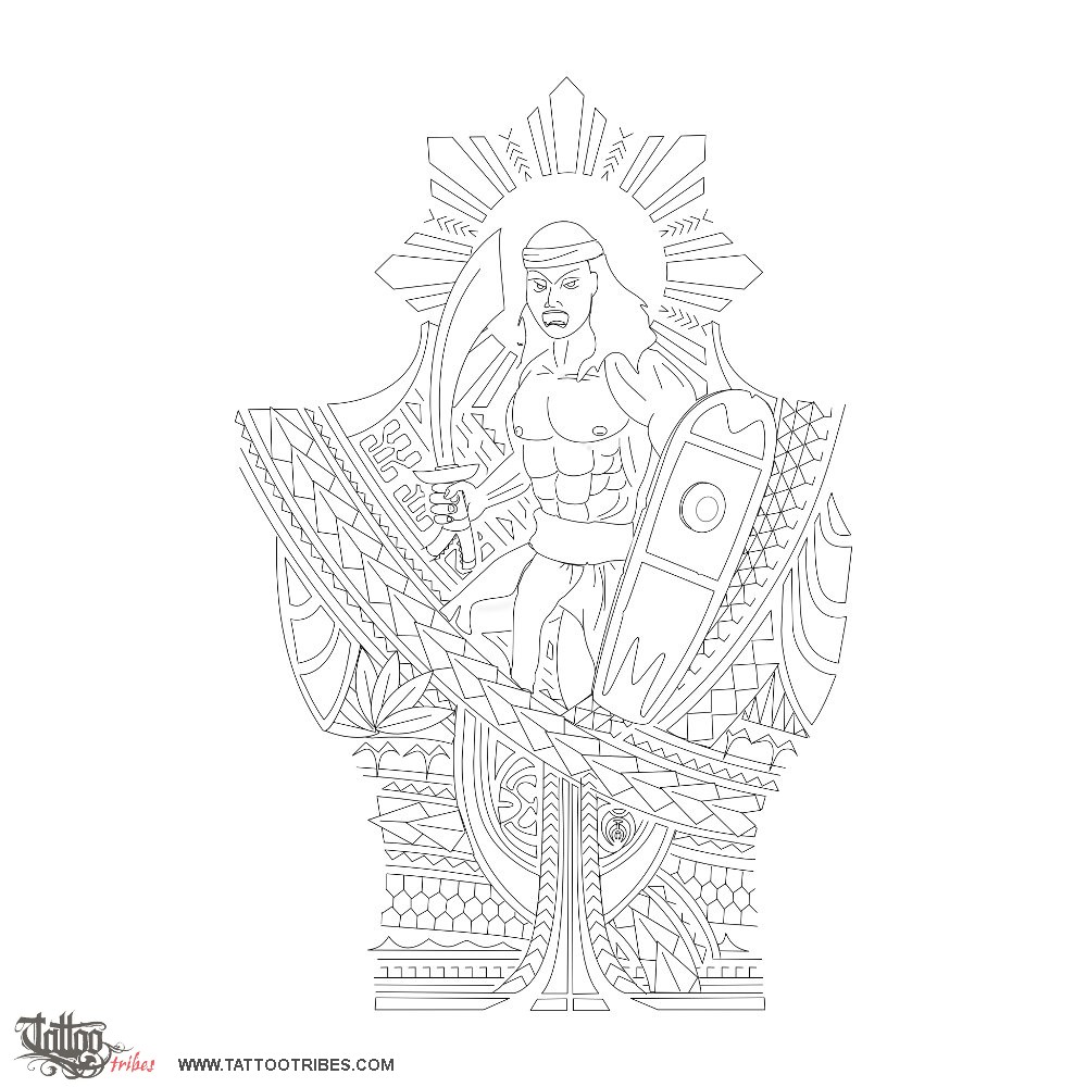 Lapu-Lapu was the first Filipino hero and it is the main subject of this sleeve tattoo requested by Frank to honour his origins and his fighting spirit (he´s a professional rugby player).