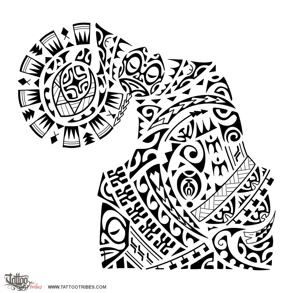 Polynesian tattoos explainedThis half sleeve and pec tattoo requested by Alessio tells about a journey, a change taking him from past to future.