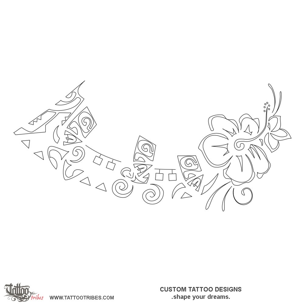 The three stylized tiki represent the three parts of triathlon, swimming, biking and running while the flowers next to the ankle are representative of Hawaii where she completed the Ironman.