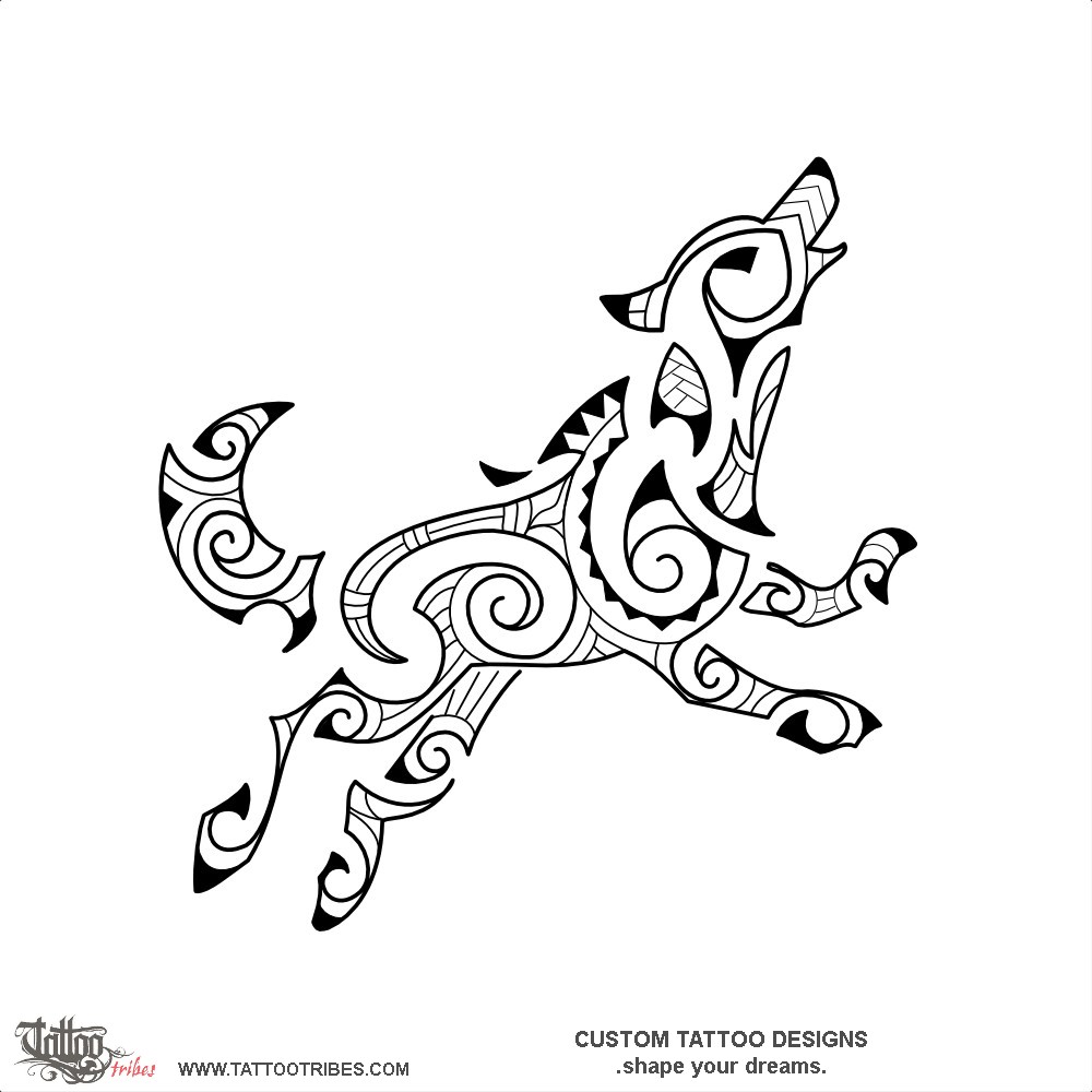 This running wolf tattoo was designed in the kirituhi Maori style using symbols of union, life,meeting,adaptability and tenacity.