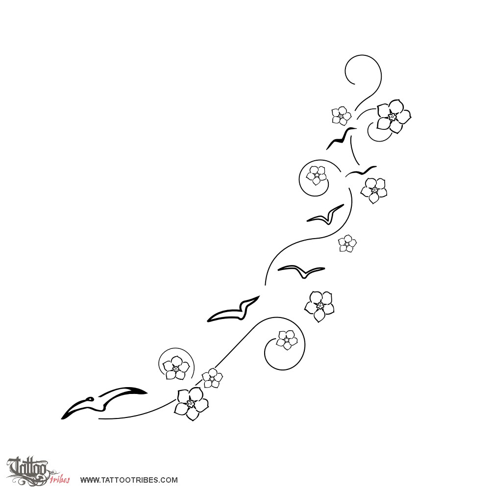 Arianna - Seagulls and flowers tattoo photo