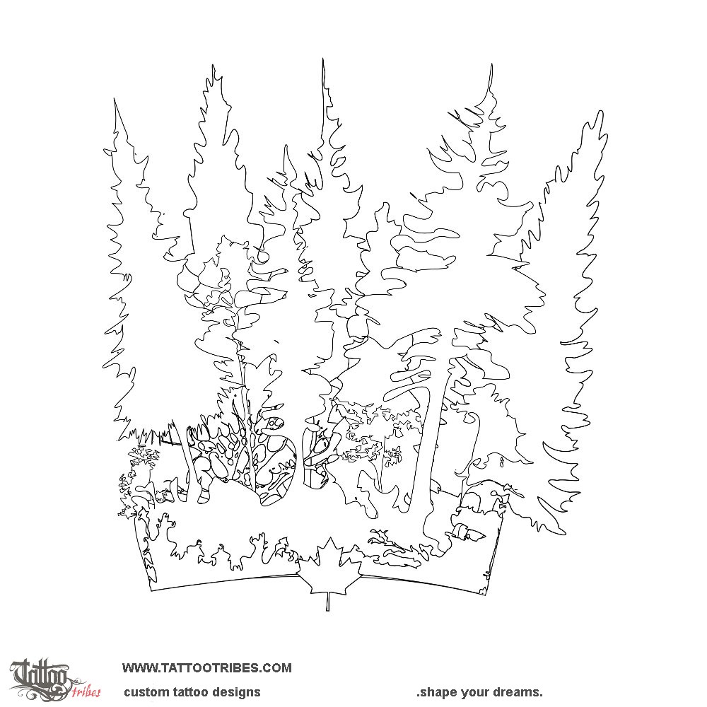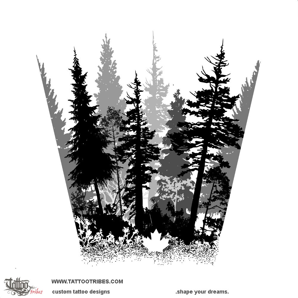 Paul asked for a forest cuff tattoo designed to cover his forearm, with different shades of black to give the feeling of depth and with a Canadian maple leaf at the base.