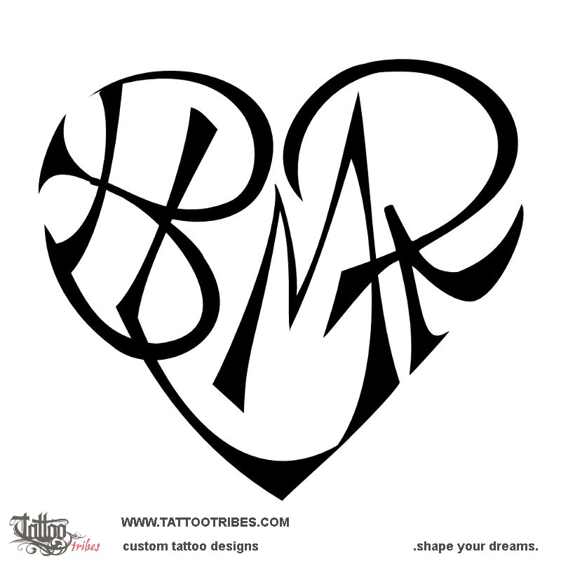 This heartigram shaped by the initials B+L+M+R was prepared for Melissa.
